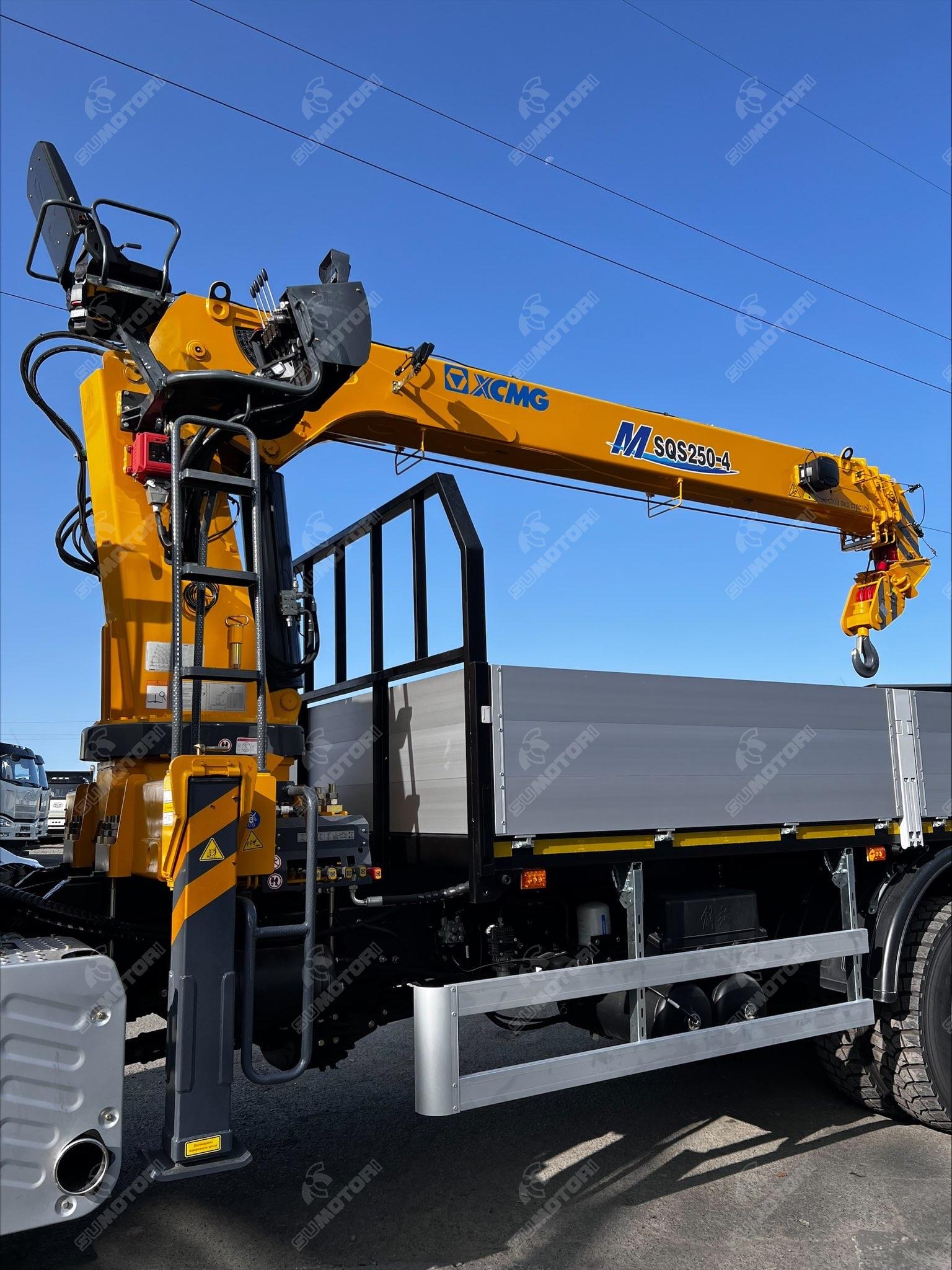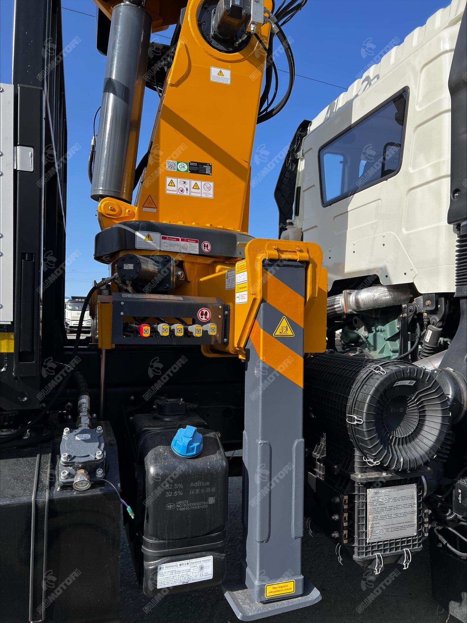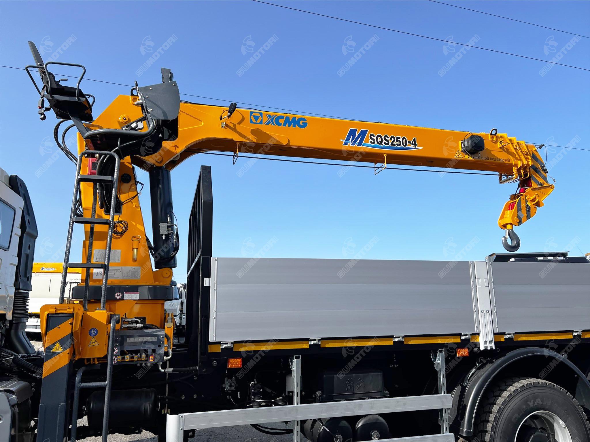 Двигатель марка: FAW модель: CA6DM2-42E51 топливо: дизель мощность, л.с.: 420 рабочий объем, литров: 11.05 турбонаддув Грузовое пространство длина, м: 7592 ширина, м: 2470 высота, м: 600 материал обшивки: материал пола: Крановая установка производитель: XCMG модель: SQS250-4 тип стрелы: телескопическая количество секций стрелы: 4 грузоподъемность: 10 тонн управление: дистанционное max вылет крюка, м: 13.6 max высота подъема, м: 15.5