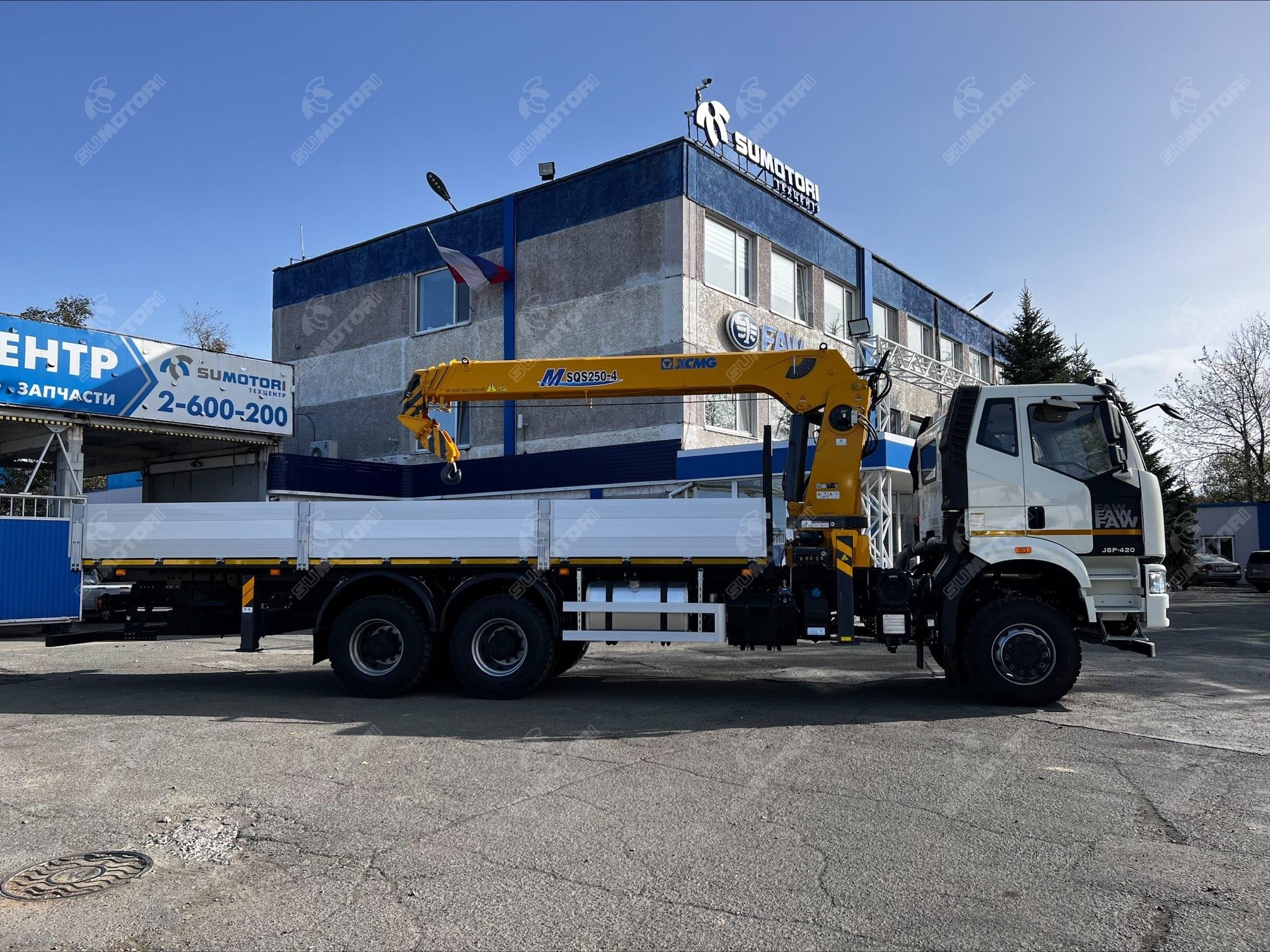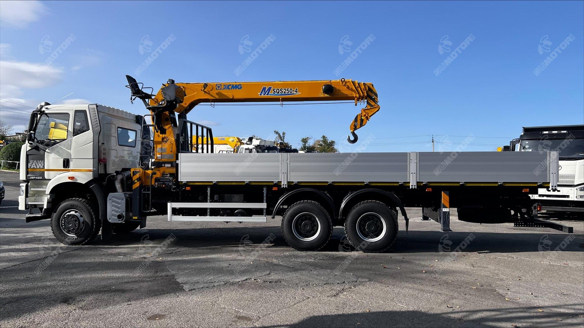 Двигатель марка: FAW модель: CA6DM2-42E51 топливо: дизель мощность, л.с.: 420 рабочий объем, литров: 11.05 турбонаддув Грузовое пространство длина, мм: 7592 ширина, мм: 2470 высота, мм: 600 материал обшивки: материал пола: Крановая установка производитель: XCMG модель: SQS250-4 тип стрелы: телескопическая количество секций стрелы: 4 грузоподъемность: 10 тонн управление: дистанционное max вылет крюка, м: 13.6 max высота подъема, м: 15.5