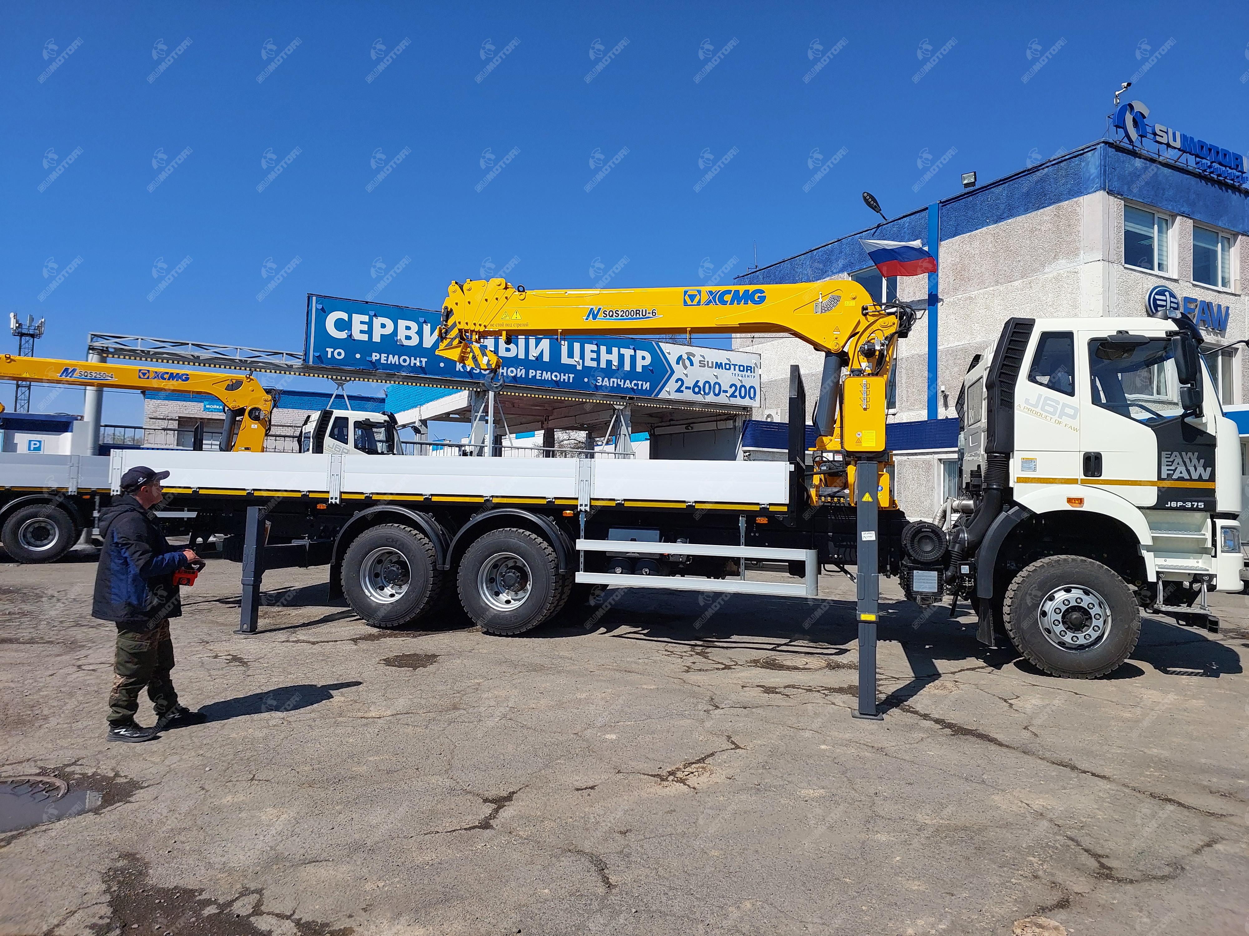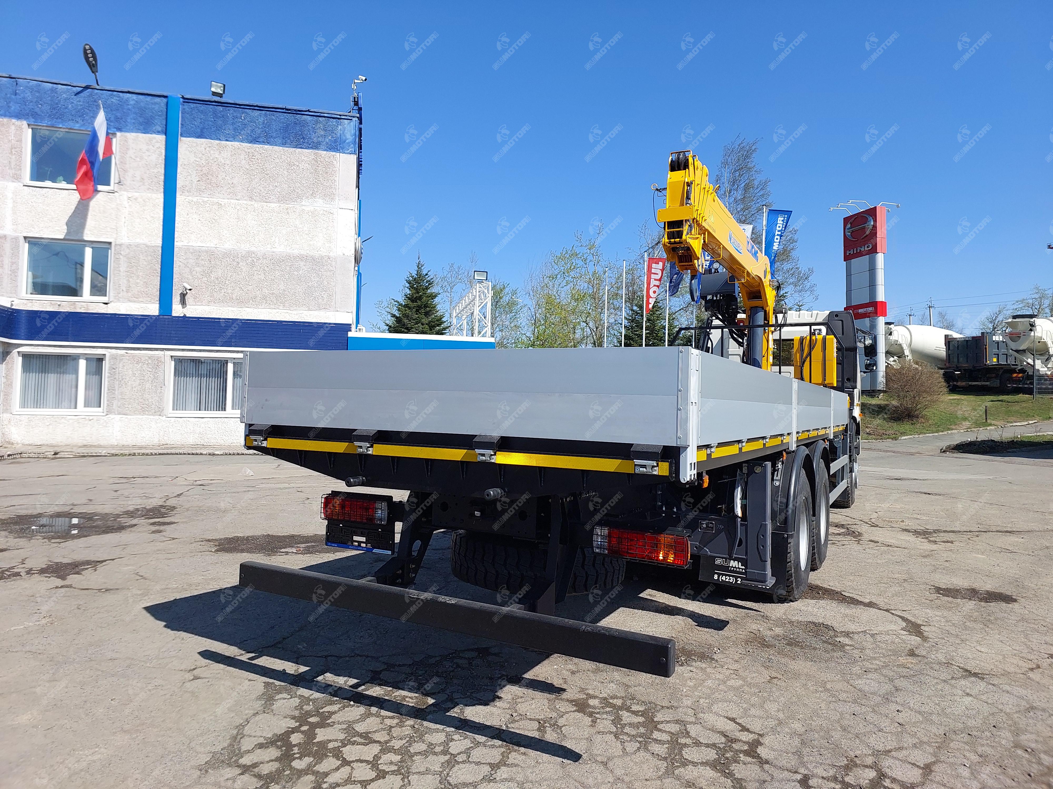 Грузовое пространство длина, м: 7800 ширина, м: 2550 высота, м: 600 материал обшивки: алюминий материал пола: Крановая установка производитель: XCMG модель: SQS125RU–6 тип стрелы: телескопическая количество секций стрелы: 6 грузоподъемность: 8 тонн управление: дистанционное max вылет крюка, м: 19.5 max высота подъема, м: 21.5