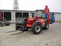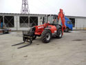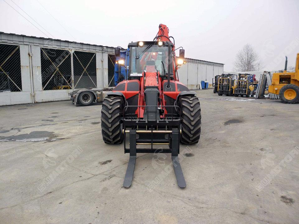 Телескопическая передняя стрела с подъемом 6 метров и быстросменной кареткой. Полноуправляемый полный привод шасси. Одинаковые колеса, кабина с кондиционером.
